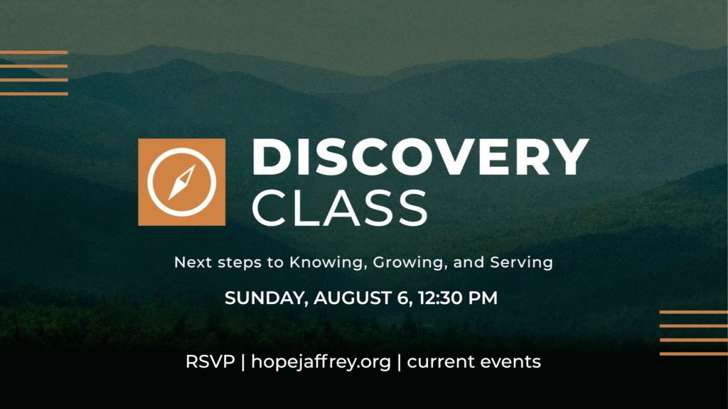 August 6th we will have a Discovery Class following the service. Whether you are new to the church or have been coming for awhile we invite you to sign up at hopejaffrey.com and join us for lunch. We would love to get to know you and answer any questions you may have about Hope as we share a simple lunch in the youth room.